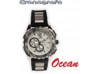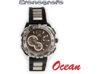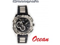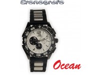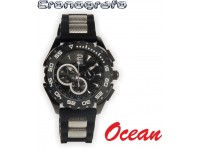 orologio acciaio c/cronografo, 10 ATM, cinturino silicone/acciaio
